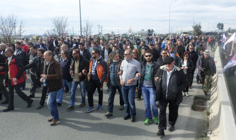 Φωνάζοντας συνθήματα για την ενότητα της εργατιάς με την αγροτιά, ενάντια στο σάπιο εκμεταλλευτικό σύστημα, ενάντια στην Ευρωπαϊκή Ένωση, πορεύτηκαν στην Εθνική Οδό και αφού πέρασαν τις αστυνομικές δυνάμεις, απέκλεισαν για ώρες το οδόστρωμα.