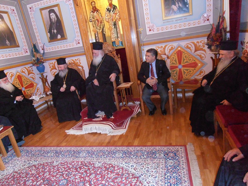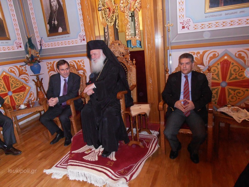 Ιδιαίτερη τιμή κατά τη χθεσινή ημέρα, δεύτερη της νέας χρονιάς, για την Ιερά Μητρόπολη Ελασσόνος και το σεβασμ. μητροπολίτη κ. Βασίλειο, που υποδέχθηκαν το μεσημέρι τον μακαριότατο αρχιεπίσκοπο Αθηνών και πάσης Ελλάδος κ.κ. Ιερώνυμο, ο οποίος αθόρυβα επισκέφθηκε την Ελασσόνα(…όπως το συνηθίζει τα τελευταία χρόνια, την συγκεκριμένη ημερομηνία), για να ευχηθεί από κοντά τον Ελασσονίτη ιεράρχη για την ονομαστική του εορτή.